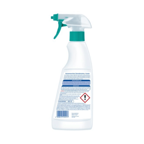 El quitamanchas de desodorante y sudor x 250 ml de Dr. Beckmann tiene un fórmula enriquecida para eliminar tanto las manchas amarillas producidas por el desodorante como los malos olores adheridos a la prenda.